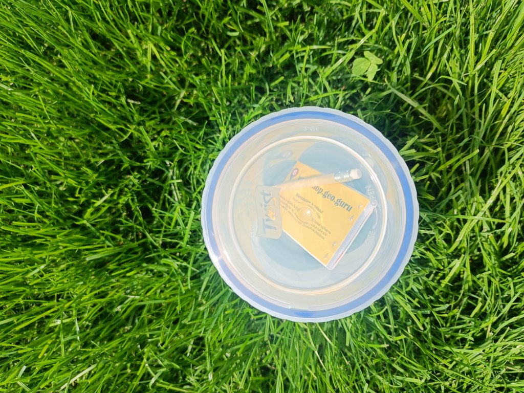Set of filled regular lock-n-lock cache. The container has a easily opened screw type lid. It is enough big to exchange geocoins, xWG, trackable items and for a pen.