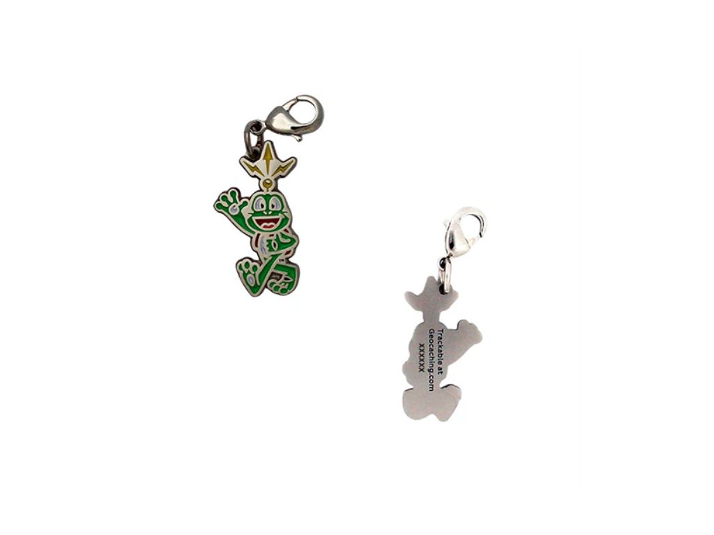 This Signal the Frog® Nano Geocoin is trackable at Geocaching.com.