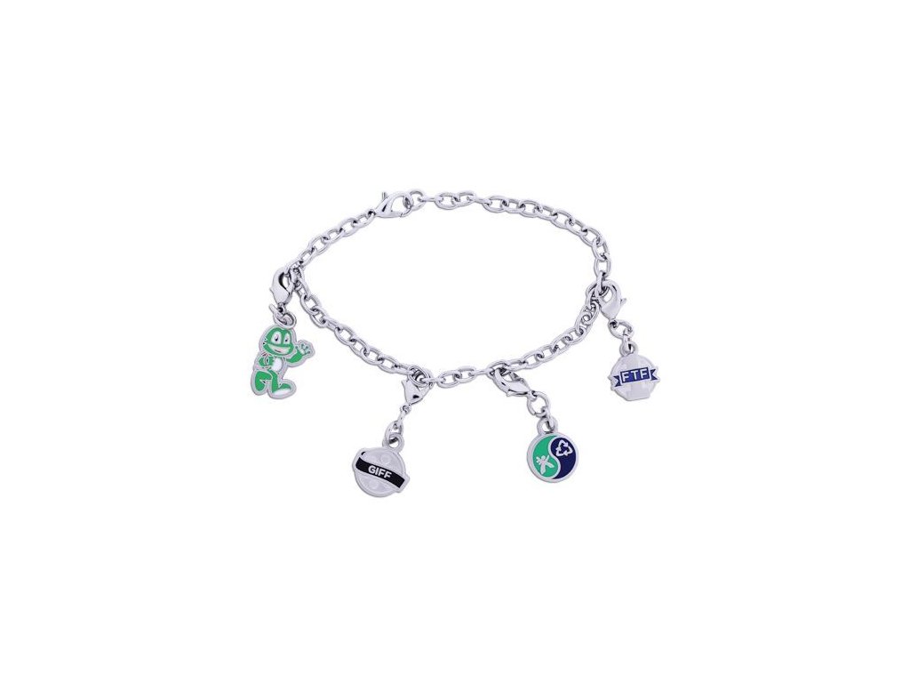 The bracelet is 8 inches long and uses a lobster clasp. Each of the four charms are also attached with a smaller lobster clasp.